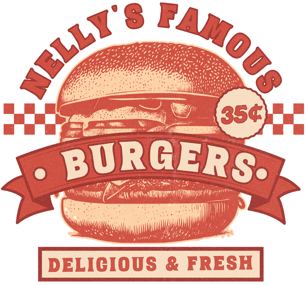 Retro 'Nelly's Famous Burgers' T-Shirt — Vintage Diner Logo Tee