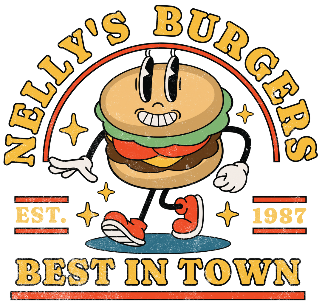 T-Shirt — "Nelly's Burgers: Best in Town" Retro Burger Graphic Tee