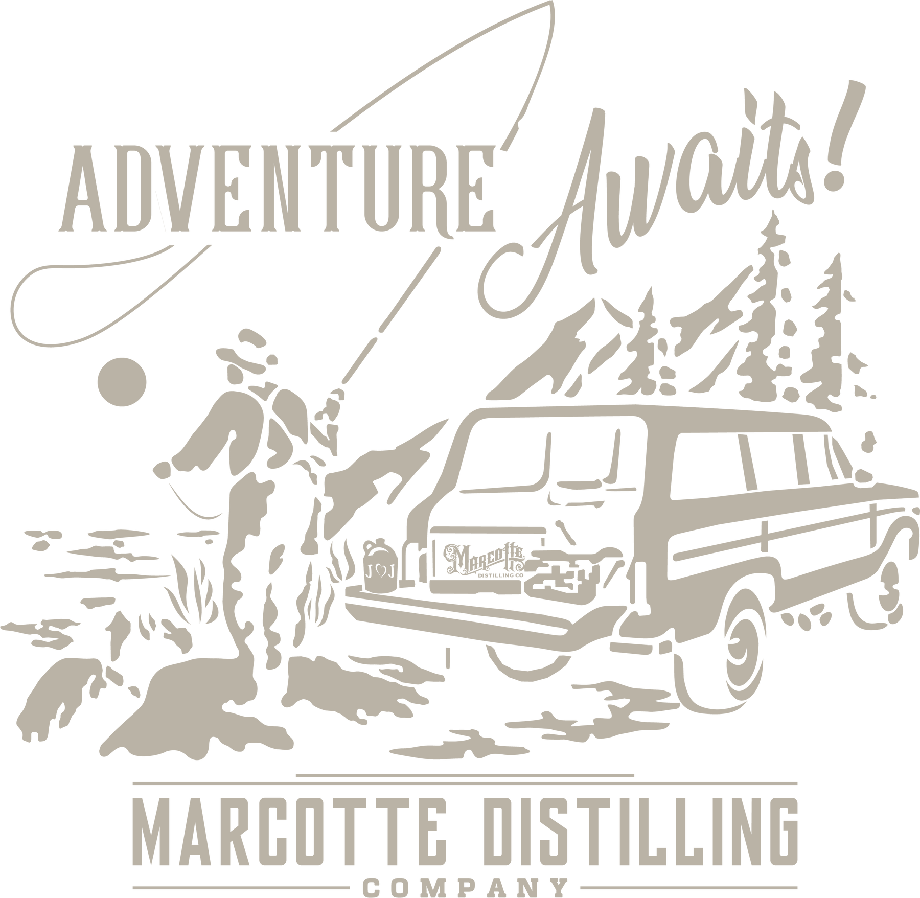 Adventure Awaits T-Shirt — Marcotte Distilling Co Retro Outdoor Logo Tee