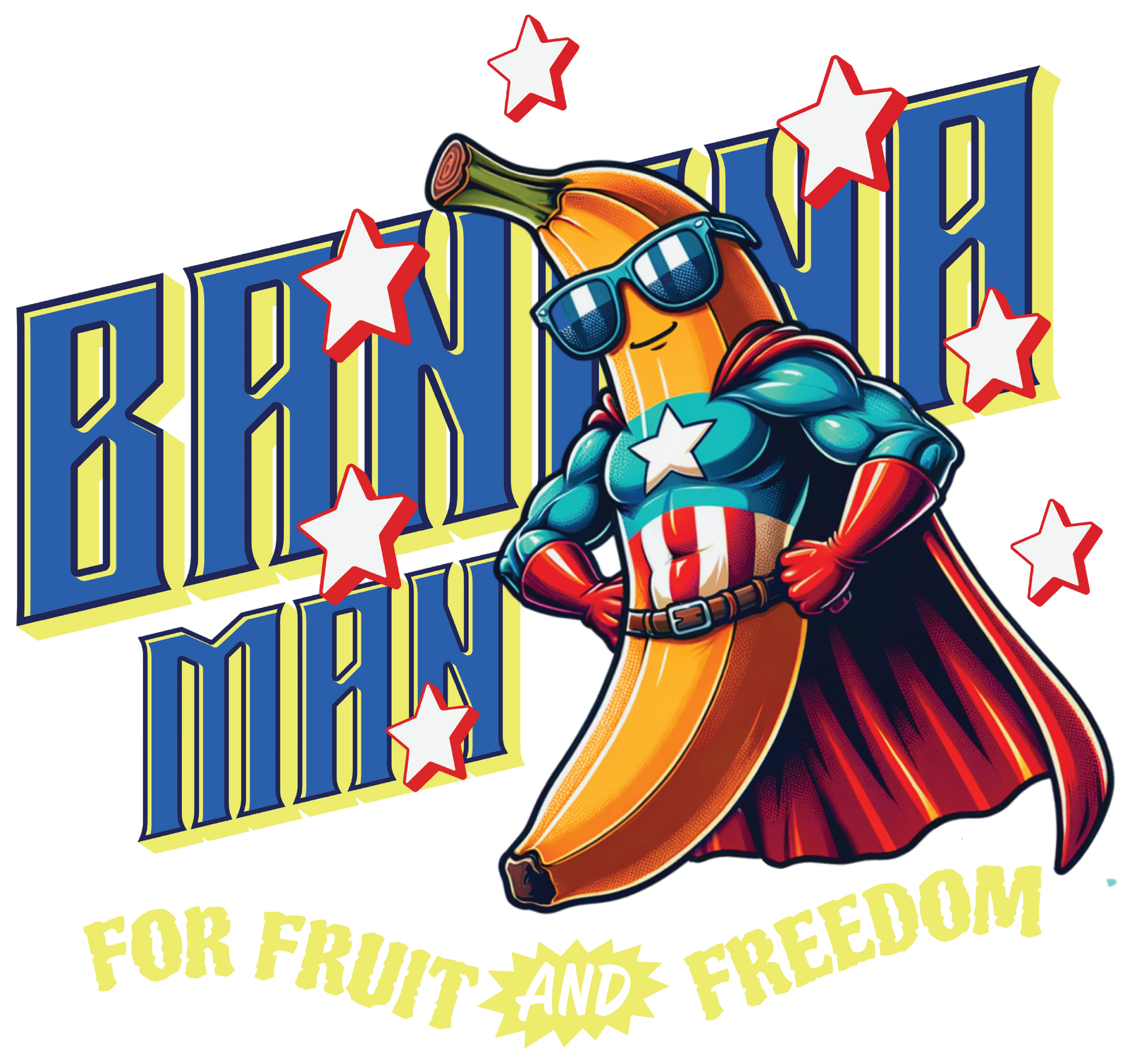Banana Man Graphic T-Shirt — “For Fruit and Freedom” Retro Superhero Tee