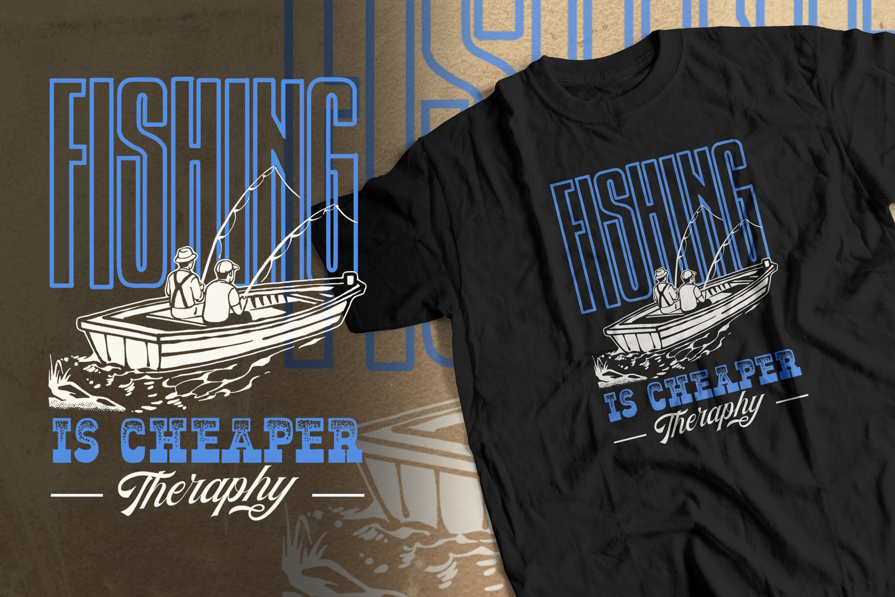 Fishing Is Cheaper Than Therapy T-Shirt — Boat Angler Graphic Tee