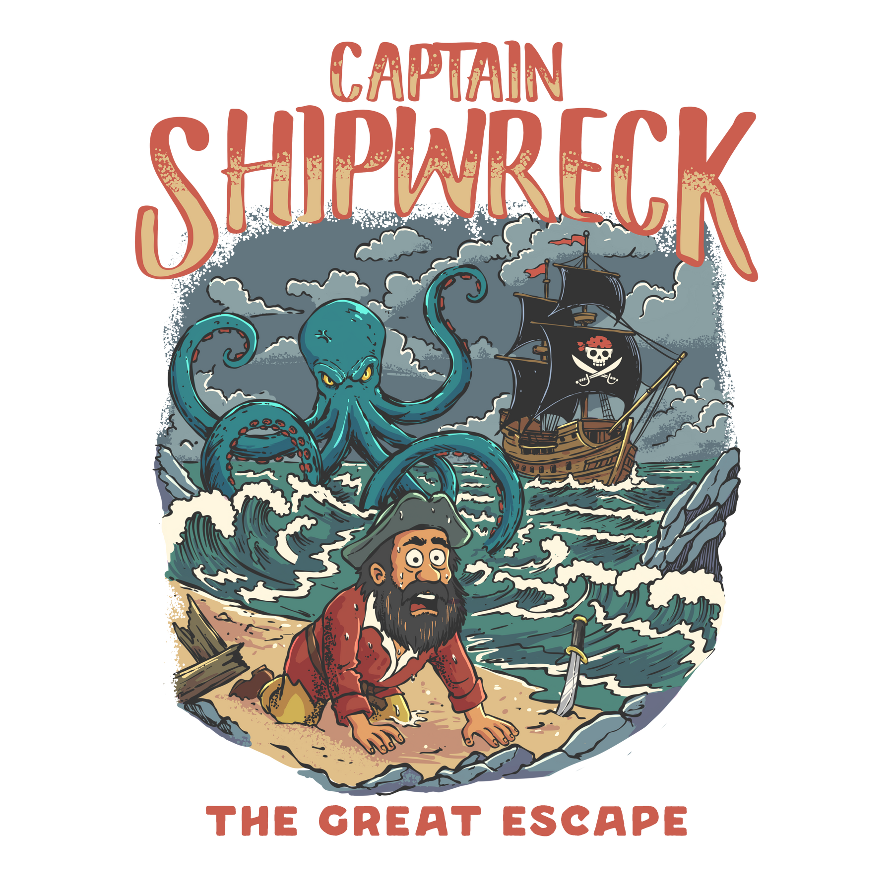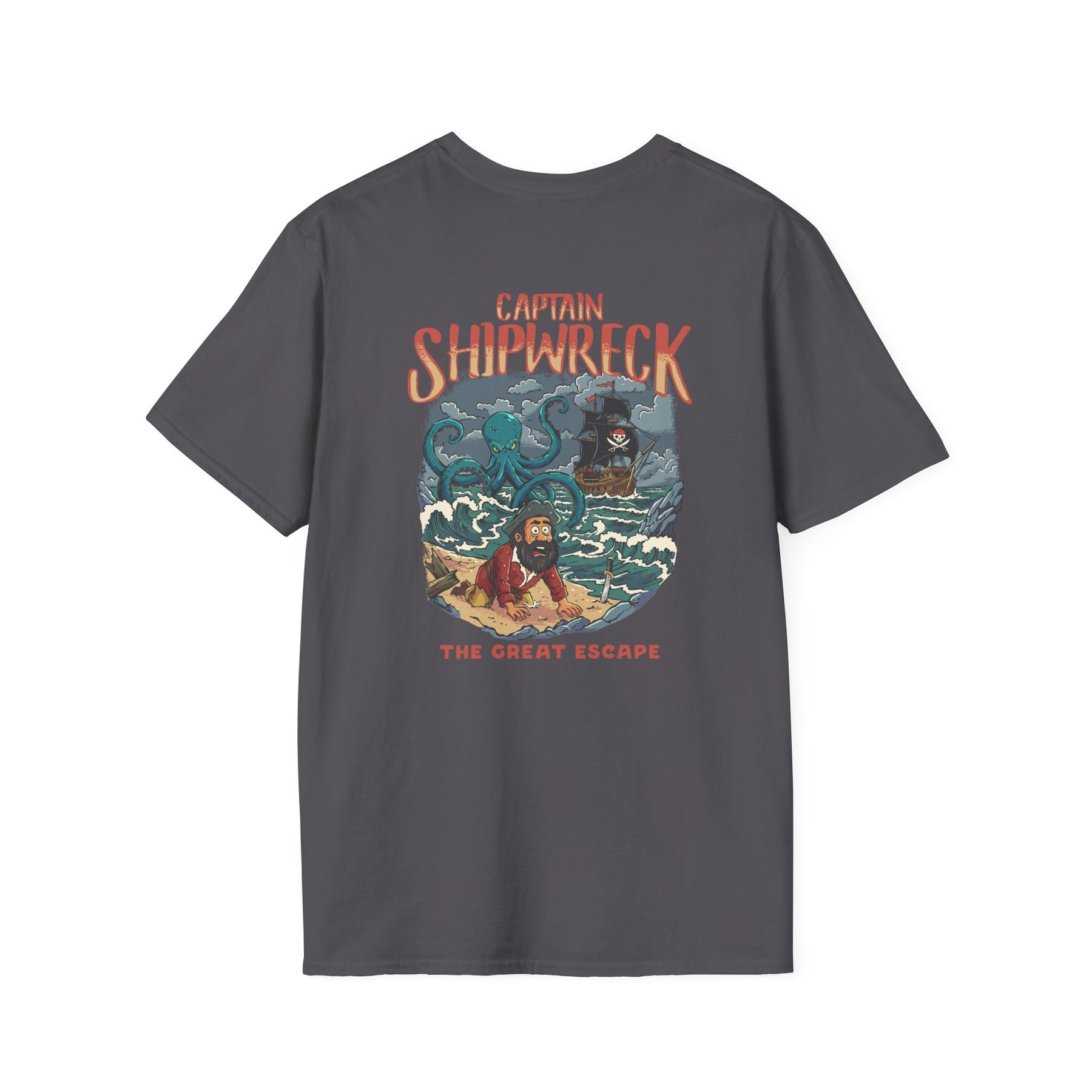 Shipwreck Captain T-Shirt – “Captain Shipwreck: The Great Escape” Graphic Tee