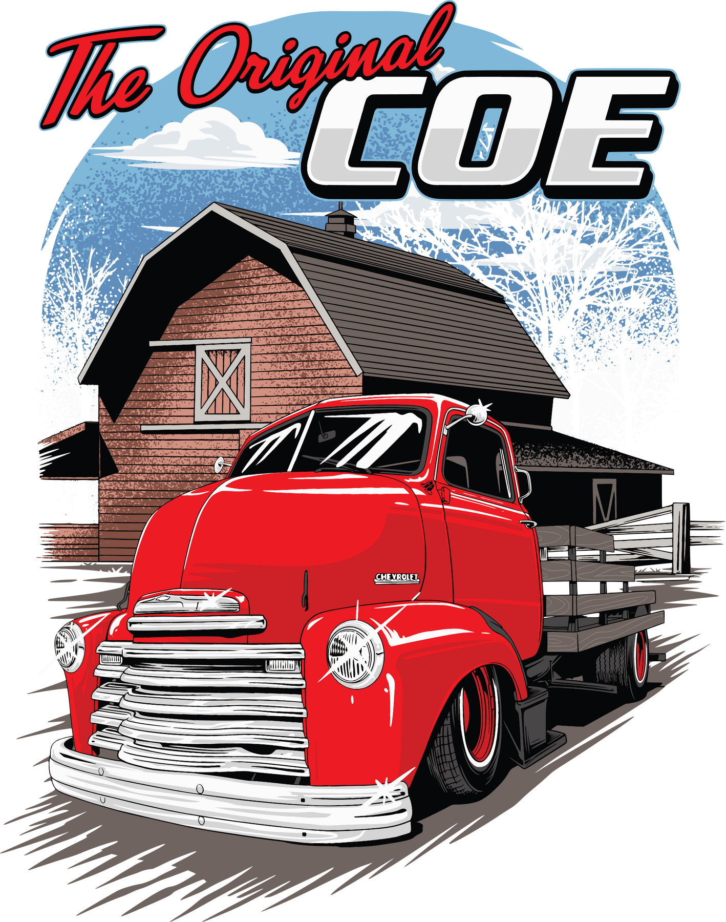 The Original Coe Truck T-Shirt - Retro Red Pickup Barn Graphic Tee